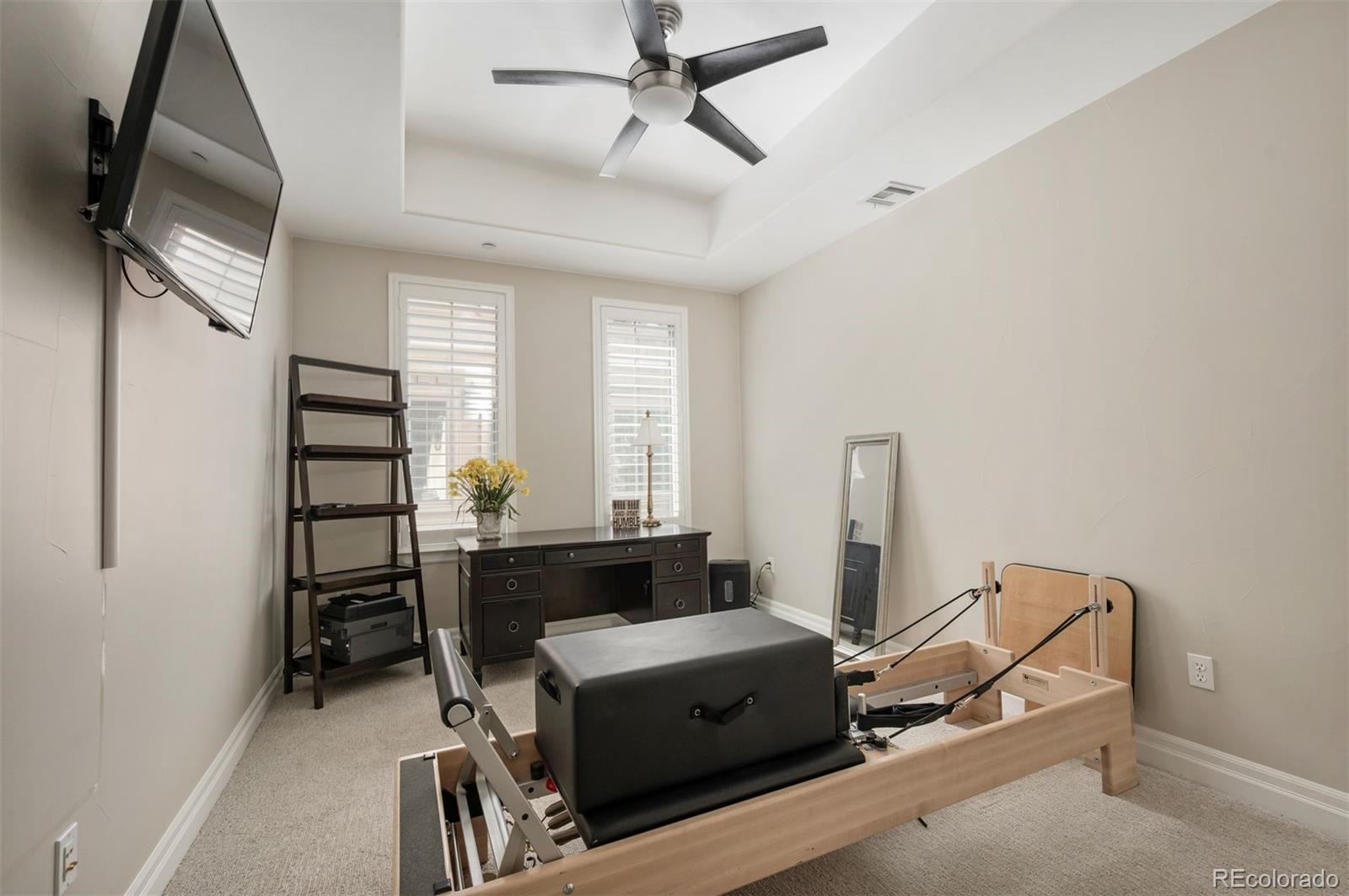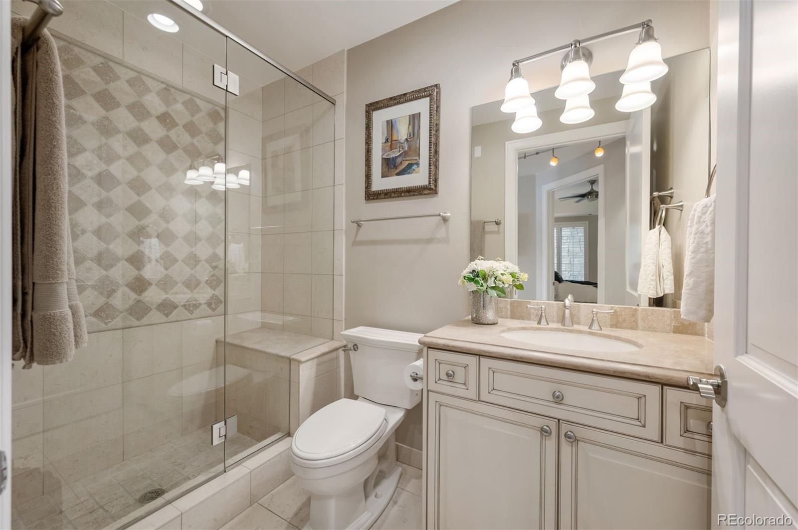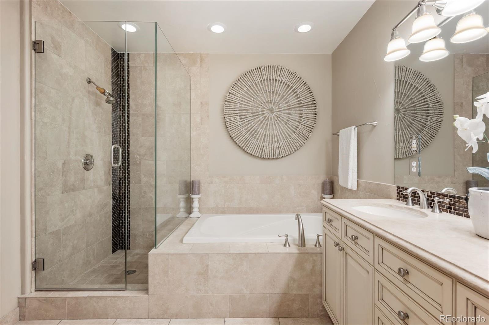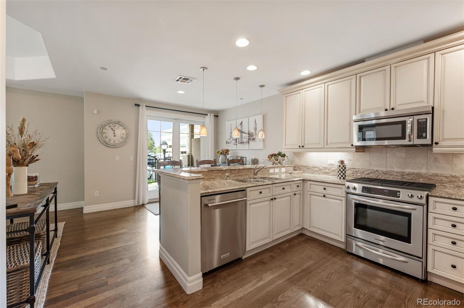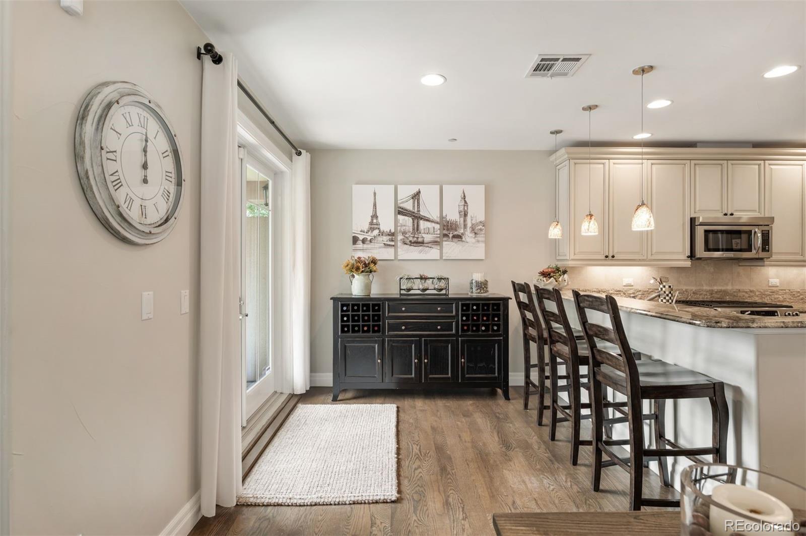 Cherry Creek perfection, ideally located close to world-class dining and shopping, plus parks, trails, downtown and more. This elegant condo features an open floorplan with beautiful kitchen showcasing stainless appliances, granite countertops, 42" cabinets, custom tile backsplash and breakfast bar. You'll love the ambiance that the coffered ceiling and cozy gas fireplace creates in the great room. Entertaining is a dream with the French door off the dining area onto your covered patio that creates your own entrance without going through the lobby. The primary suite features a five-piece bath with custom shower and walk-in closet. The second bedroom, hall bath and laundry complete the layout. Two garage parking spaces and a storage closet provide plenty of room for all your gear. This delightful home is move-in ready, all you have to do is unpack and start enjoying that Cherry Creek lifestyle!