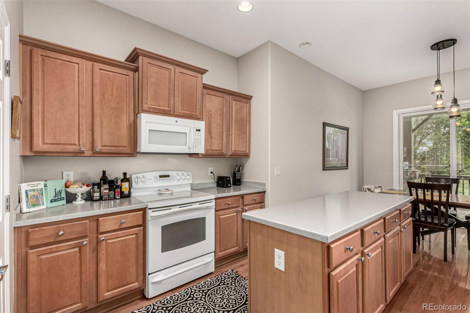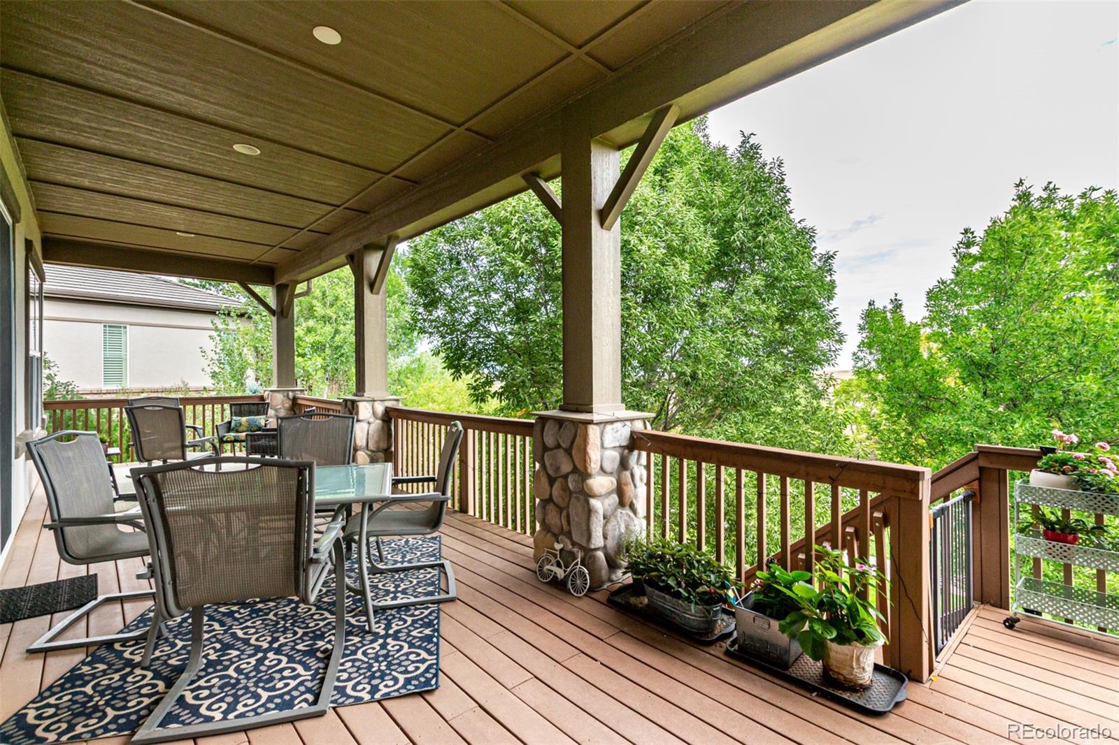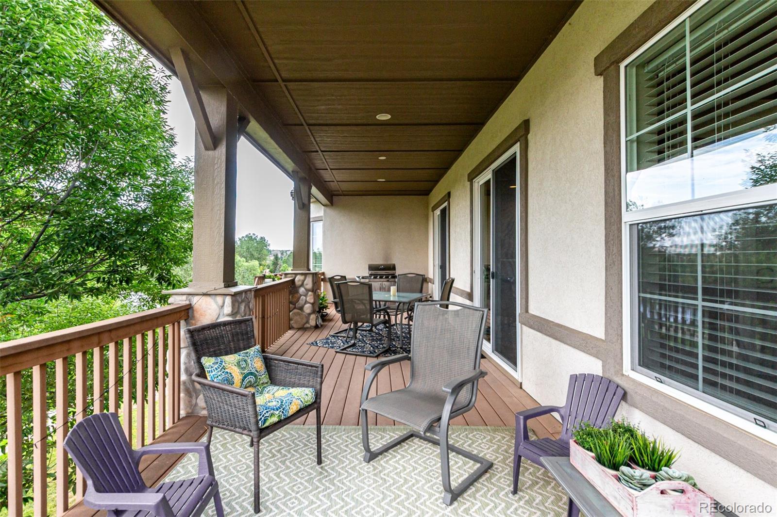 The heart of the home is the expansive family room with a cozy gas fireplace, flowing seamlessly into the chef's kitchen with a breakfast bar, island, pantry, rollout drawers, and abundant cabinetry. Step through one of two sliding glass doors to the large covered deck and enjoy breathtaking Colorado sunsets.