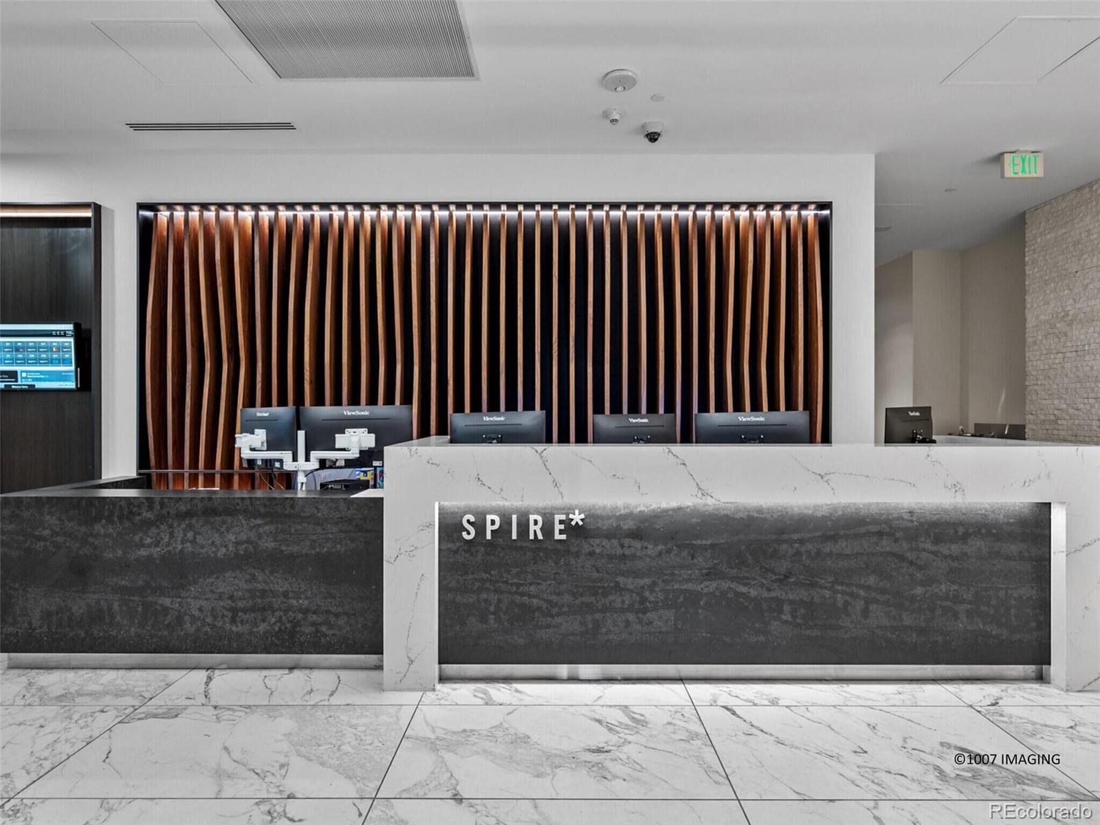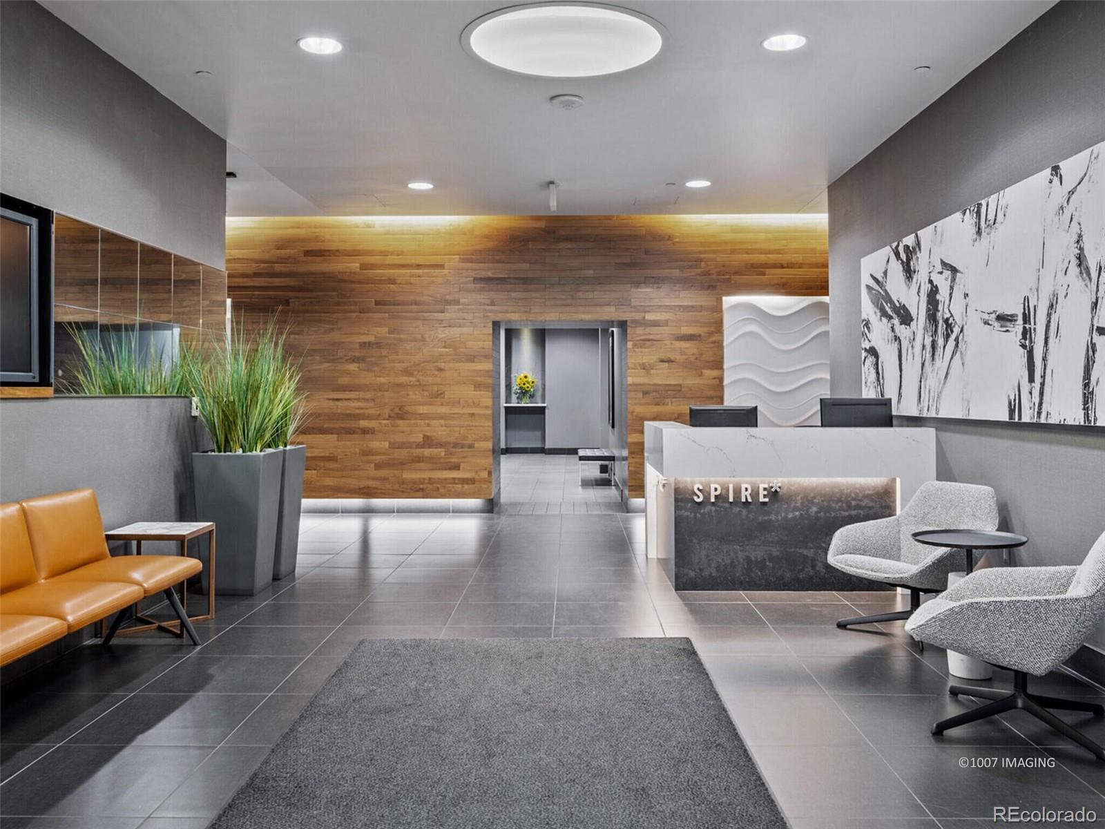 SPIRE CORNER RESIDENCE WITH SPECTACULAR VIEWS! Come home to this contemporary condo perched 17 stories above Downtown Denver and be greeted by floor-to-ceiling windows that wrap around the residence and frame jaw-dropping views of the majestic Rocky Mountains, Mile High Stadium, the Downtown Denver skyline, Elitch Gardens, and beyond! Those floor-to-ceiling windows drench this home in natural light and shine onto newly-replaced hardwood flooring! The loft-style wide-open floor plan includes 1,639 square feet of living area with 2 bedrooms, each with its own ensuite bathroom, newer cozy carpeting & motorized shades throughout. Primary bedroom features a custom closet system. The 2nd bedroom has a built-in Murphy Bed--great to also serve as a quiet workspace. The chef's kitchen boasts granite countertops, stainless steel appliances, and a large island. Adjacent to the kitchen is a bonus room that works well as a media room, dining room, den, or a work-from-home space. After a long day, unwind with a glass of prosecco on your private balcony and take advantage of our Colorado climate as the sun sets behind the Rocky Mountains and the weather moves in from the West. View this home again at night to appreciate the views! Also included: 2 parking spaces & 1 storage space in the attached garage. Immerse yourself in the vibrant SPIRE community, complete with LEED certification, a pool, hot tub, health club, multimedia lounge, and theater. Your dog will love the dedicated dog park, and the grilling area is perfect for entertaining. Benefit from 24-hour courtesy desk service, guest suites, and a modern access control system. SPIRE has super-fast internet-1 gig dedicated to each condo, along with DirecTV HD-DVR with HBO, Showtime + Cinemax. Very well-maintained building. SPIRE is in the heart of downtown, surrounded by the very best restaurants and a mere stroll to the performance venues and sports arenas. Embrace the downtown lifestyle and make this SPIRE residence your own.